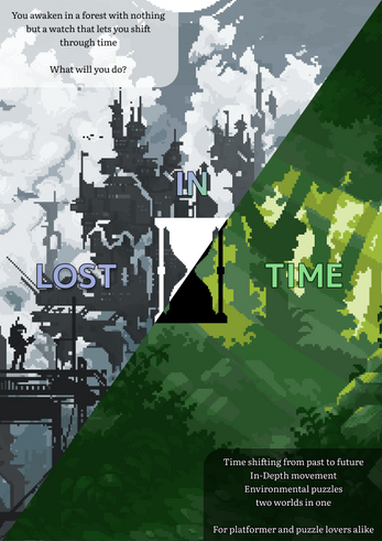 Lost In Time is a 2D platformer where players explore a world across two different Times; A past lush with jungle and a future of ruin. By switching between these timelines, players can manipulate the environment to overcome obstacles, solve puzzles, and progress through the world.